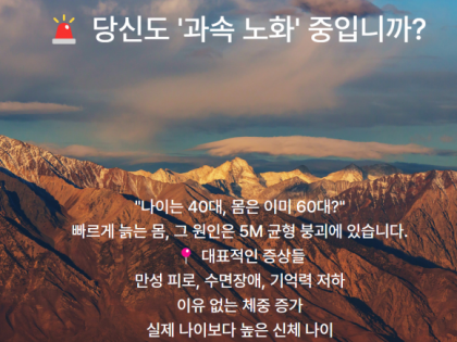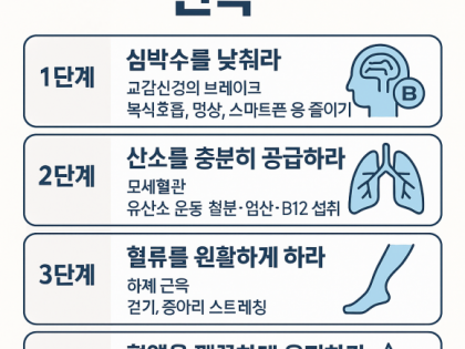 ✅ “근육이 줄어드는 순간, 당신의 건강도 무너지기 시작합니다”40대 중반의 환자 한 분이 이렇게 말씀하셨습니다. "살이 찐 건 아닌데 힘이 없고, 자꾸 무릎이 시큰거리고, 자고 일어나도 피곤해요. 그냥 나이 드는 거겠죠?"하지만 저는 그분께 이렇게 말씀드렸습니다."그건 근육이 조용히 무너지고 있기 때문입니다."40대 이후, 나이가 들수록 변화는 눈에 띄지 않게 시작됩니다.그러나 그 속도는 의외로 빠르고, 결과는 매우 치명적입니다.근육은 40대부터 매년 1%씩 줄어듭니다의학적으로 ‘근감소증’이라 부르지 않더라도, 40대부터는 누구나 자연적인 근육 소실을 겪습니다.특히 하체 근육부터 줄어들고,활동량이 줄면서 기초대사량도 감소하고,뱃살이 늘고, 혈압이 오르며, 혈당도 불안정해지죠.그 결과는 이렇게 이어집니다:이 모든 신호는, 근육의 소멸이 불러온 조용한 건강 붕괴의 서막입니다.근육은 ‘힘’이 아니라 ‘호르몬 공장’이고 ‘대사 제어 시스템’입니다많은 분들이 근육을 단순히 **“힘을 내는 조직”**으로 생각하지만, 근육은 훨씬 더 고도로 조직된 생리 시스템입니다.1️⃣ 근육은 혈당을 흡수하는 저장고다인슐린 수용체가 가장 풍부한 조직이 바로 근육입니다.근육이 많을수록 혈당은 빠르게 흡수되어 저장됩니다.즉, 근육이 많다는 건 인슐린 저항성으로부터 멀어진다는 뜻입니다.2️⃣ 근육은 혈압을 낮추는 펌프다하체 근육은 정맥의 혈액을 심장으로 되돌리는 펌프 역할을 합니다.근육이 약하면 혈액이 말초에 정체되고, 심장은 더 세게 뛰어야 하죠.결과: 고혈압, 하지부종, 심장 부담 증가3️⃣ 근육은 마이오카인을 분비하는 내분비 기관이다운동 시 분비되는 IL-6, Irisin, Myonectin 등은전신의 염증을 억제하고, 간과 지방조직의 대사를 회복시킵니다.마이오카인은 당뇨, 고혈압, 비만, 치매 예방에 핵심적인 작용을 합니다.근육을 다시 세우는 4가지 전략근육은 나이를 탓하지 않습니다.운동, 식단, 수면, 스트레스 관리로 언제든 다시 회복될 수 있습니다.1. 하체 근육부터 다시 세우세요걷기, 계단 오르기, 스쿼트는 최고의 재활 운동입니다.하루 7천 보 이상, 주 2~3회 하체 웨이트 운동은 필수입니다.하체는 전체 근육량의 70%를 차지합니다.2. 단백질은 아침에 먼저 섭취하세요기상 후 1시간 이내에 단백질을 섭취하면근육 합성 유전자(mTOR)가 활성화됩니다.계란, 유청단백질, 두부, 닭가슴살 등을 소량이라도 꼭 드세요.3. 수면은 근육 회복의 황금시간입니다밤 10시~2시, 성장호르몬 분비 최대 시간입니다.수면이 부족하거나 불규칙하면, 근육 회복은 이루어지지 않습니다.멜라토닌 리듬을 유지하려면스마트폰은 밤 9시 이후 내려놓고, 조명을 어둡게 하세요.4. 코르티솔을 낮춰야 근육이 보존됩니다만성 스트레스는 코르티솔을 높이고,코르티솔은 근육을 분해합니다.복식호흡, 아침 햇볕, 명상, 스트레칭은부교감신경을 자극해 근육 손실을 막아줍니다.결론: 40대 이후의 생명력은 ‘근육’에 달려 있습니다지금 당신의 몸이 보내는 신호들 —무기력, 불면, 피로, 체중 증가, 통증…이 모든 것은 나이 때문이 아니라 근육이 사라진 결과일 수 있습니다.근육은 약이 아닙니다. 치료입니다.지금부터라도✔ 하체를 쓰고✔ 아침에 단백질을 먹고✔ 밤에 숙면을 취하고✔ 마음을 진정시키는 루틴을 시작하세요.근육이 살아나면, 당신의 삶도 다시 강해질 수 있습니다.